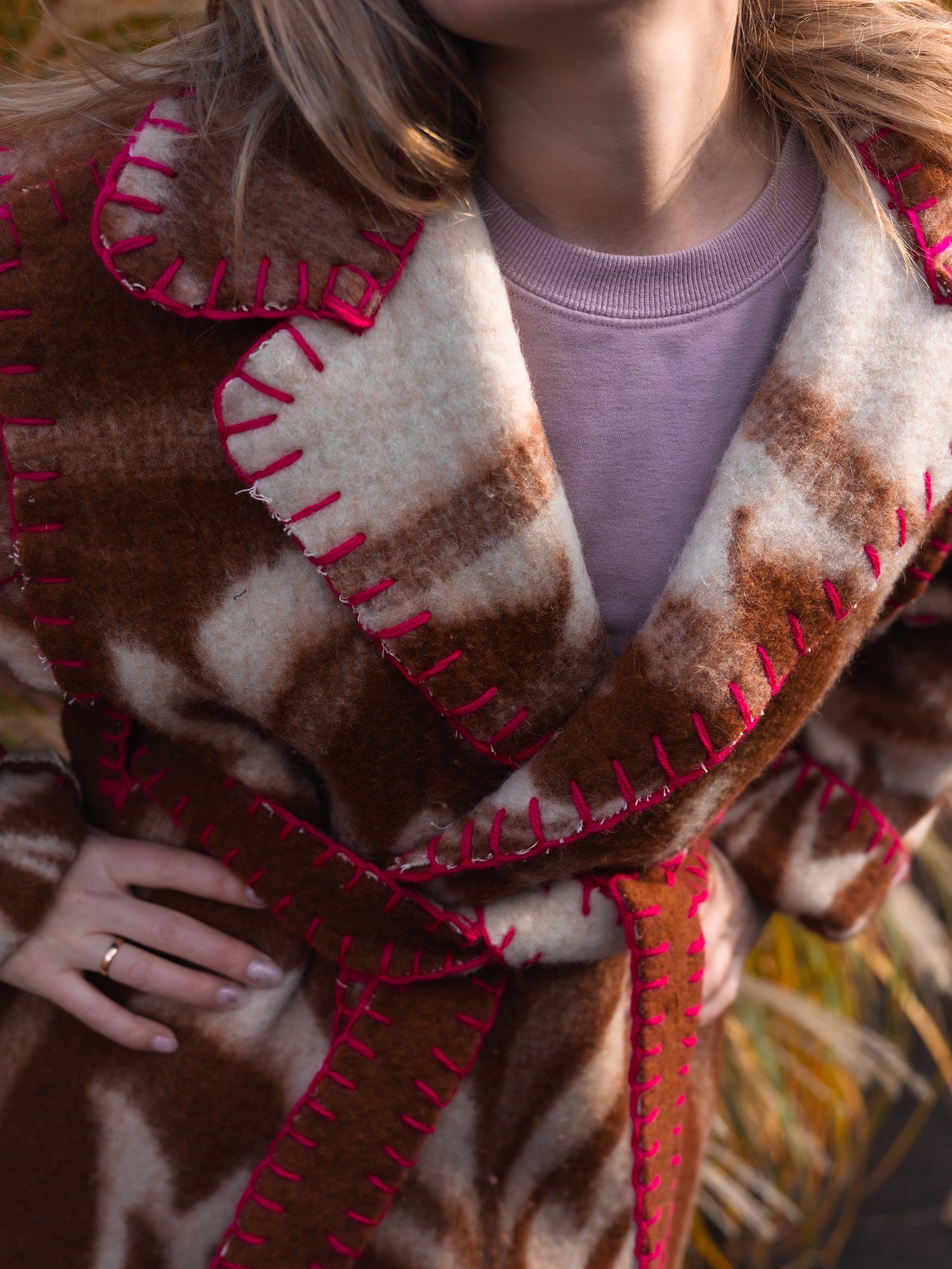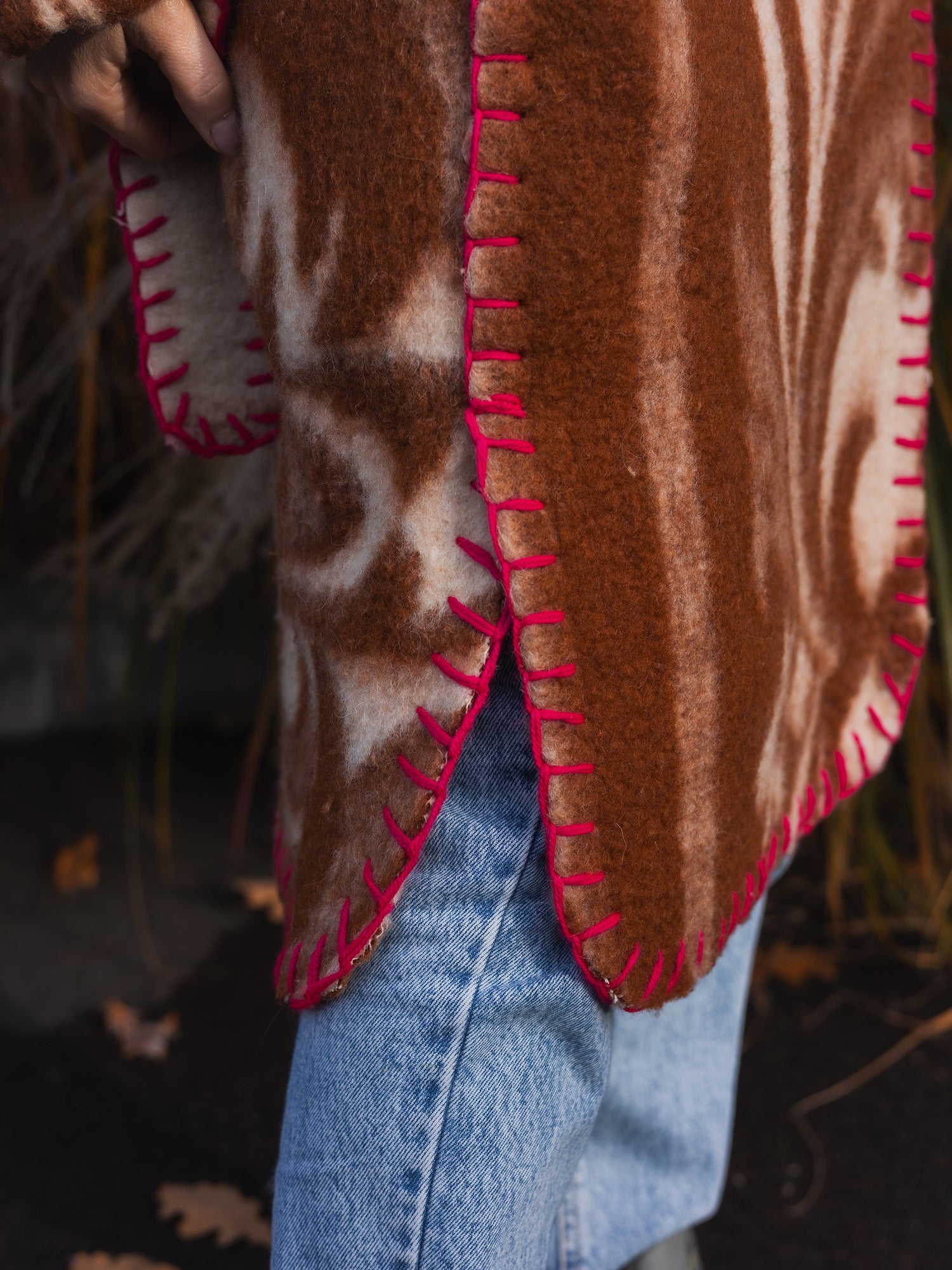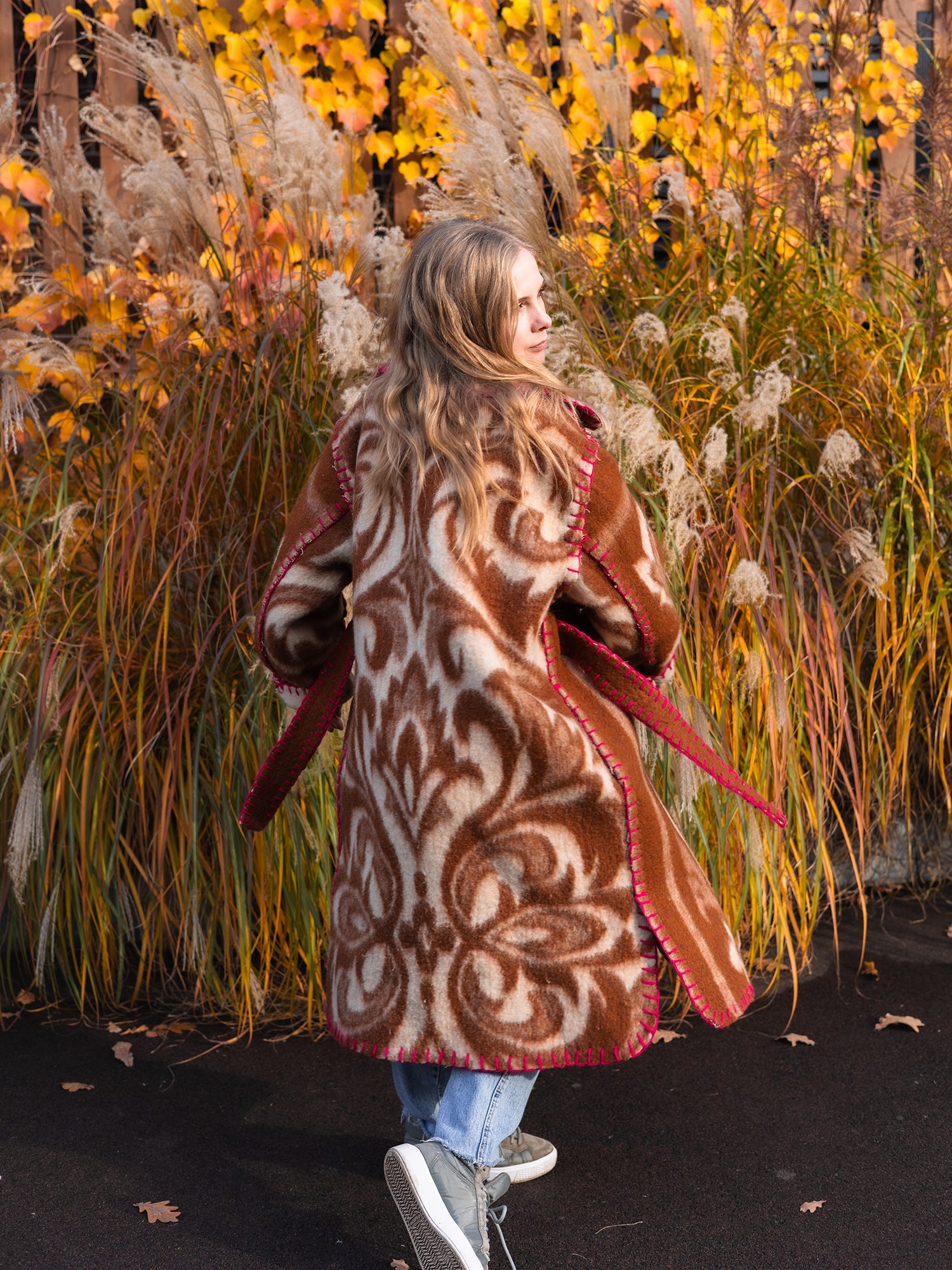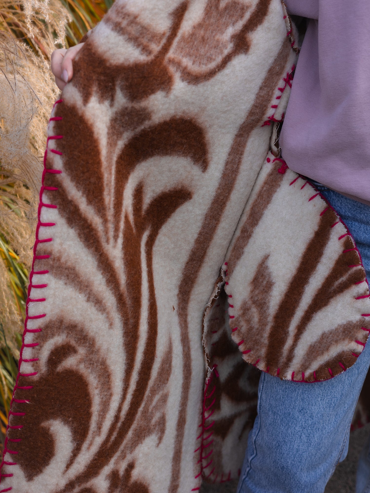 Step into vintage comfort with this one-of-a-kind oversized coat, lovingly upcycled from a thick vintage wool blanket.