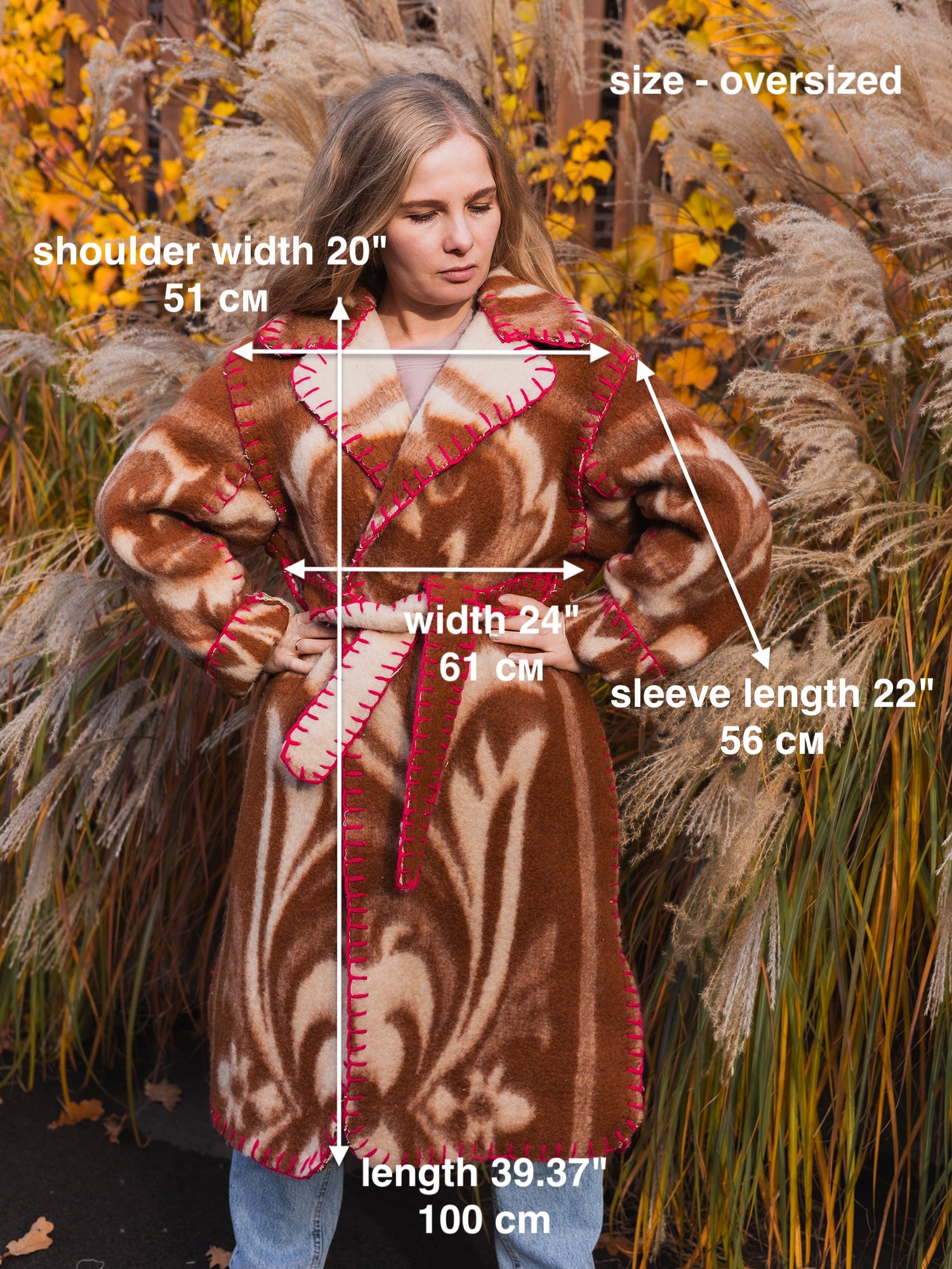 Wool Blanket Coat Oversized, Upcycled brown Jacket.